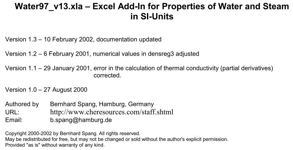 아래의 사이트에서 Excel 을 통해서 물과 증기의 물성치를 계산하는 방법과 파일을 제공하고 있으므로 참고할 것.