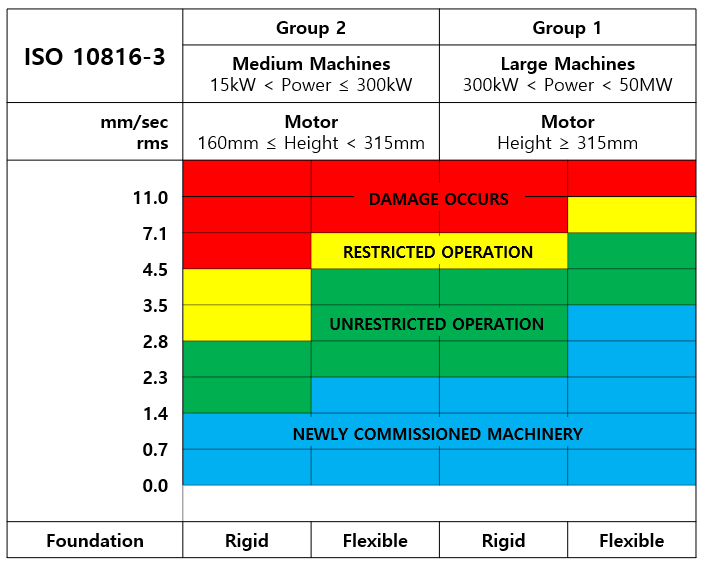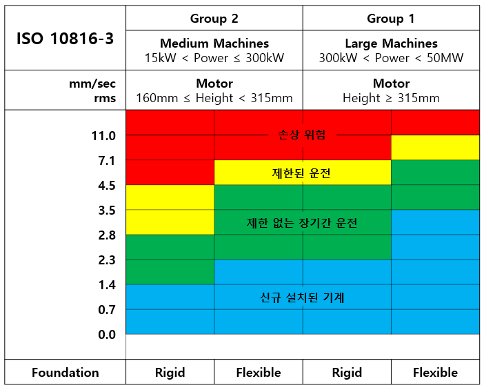 측정방향에서 최저 고유진동수가 주 가진 주파수보다 최소 25% 이상 크다면 이 지지시스템은 그 방향으로 Rigid (강성)하다고 할 수 있다. 그 외의 다른 모든 지지 시스템은 Flexible(유연)하다고 간주할 수 있다.
