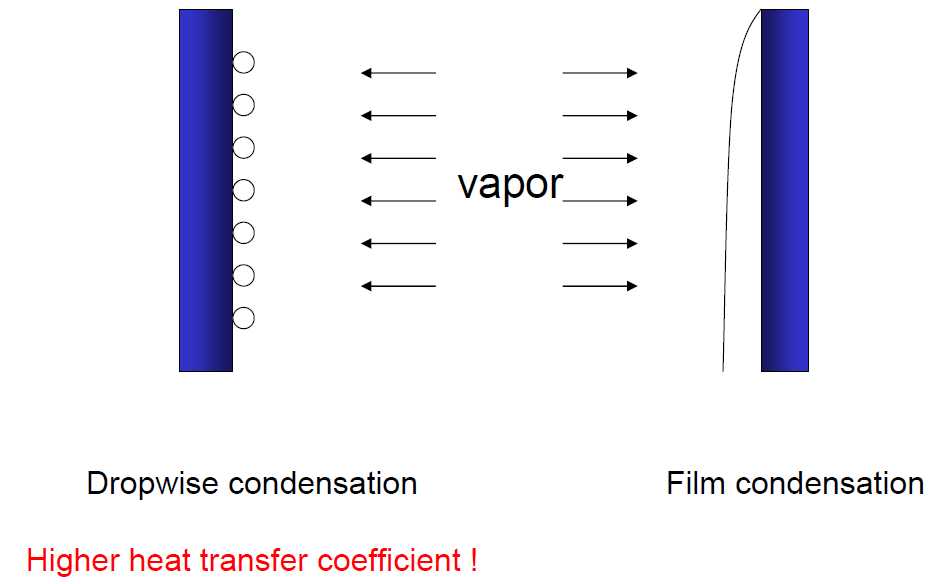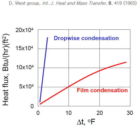 - 액적응축이 막응축의 경우에 비해 큰 열전달 성능이 기대됨