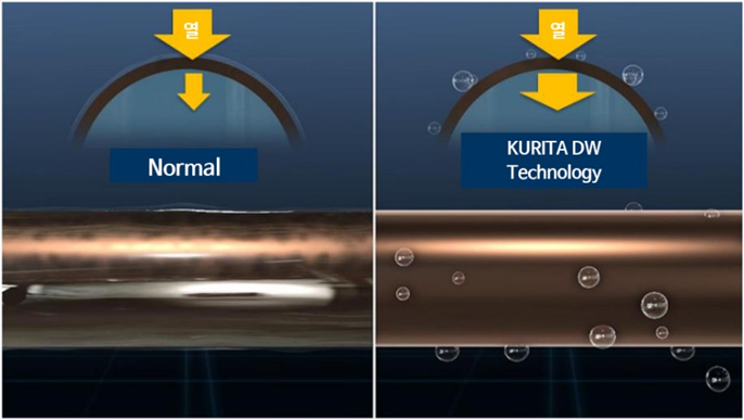 - HANSU의 DW Technology는 금속표면의 발수성을 향상시키는 기술로써 금속 표면에 제품을 흡착시켜 금속의 표면에 흡착하여 발수성 환경을 조성하고 막 형태의 응축을 물방울 형태로 변환 열효율을 높이고 부식을 방지함